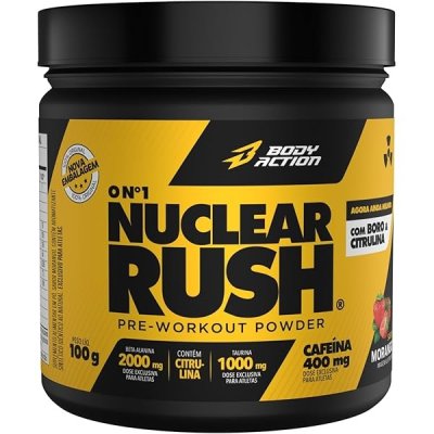 Nuclear Rush® é o mais novo pré-treino com uma ampla combinação de substâncias que vão propiciar notavelmente uma explosiva melhora da performance. Seus efeitos geram o aumento de força, foco, vasodilatação, postergação da fadiga muscular, anti-oxidação e liberação de endorfina. SEUS TREINOS NÃO SERÃO OS MESMOS.