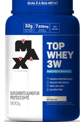 TOP WHEY 3W é o suplemento proteico mais premiado do Brasil! Essa fórmula exclusiva da Max Titanium contém alto teor de proteínas que auxiliam na formação dos músculos. Composto por três tipos de proteínas do soro do leite (Concentrada (WPC), Isolada (WPI) e Hidrolisada (WPH), suas matérias-primas possuem alta quantidade de aminoácidos, principalmente de BCAAs. A linha Mais Performance fornece de 31g a 32g de proteínas por porção, além de 11 vitaminas e 6 minerais. |